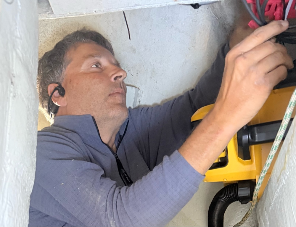 On day 4, the writhing pipe was installed between toilet and aft locker (lazarette) in readiness to connect to the holding tank. That last connection was, of course, the crux. The connection had to be made just beyond an arm’s reach at the upper, outermost recess of a very cramped lazarette. Extreme boat yoga forced me into an avoidance strategy of tackling multiple other, less obnoxious and intimidating boat jobs.
