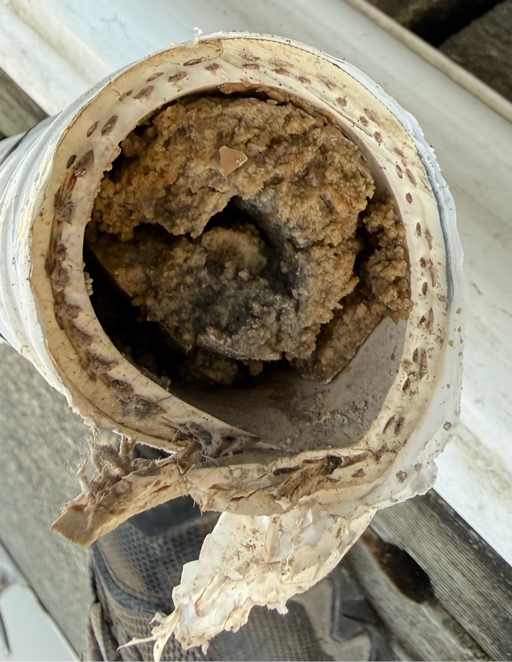 On day 3, I cut the old pipe in half to ease its removal and soon our boat (and home) was smelling like a sewer. The whole pipe was occluded by magnesium ammonium phosphate hexahydrate crystals (otherwise known as STRUVITE) that were stained a faeculent brown colour. STRUVITE is formed when urine is added to seawater and allowed to stagnate in a long pipe. Add a little tropical heat and a lengthy layup and soon our 3 year old, odour-free pipe looked like a knackered coronary artery that was definitely not odour free!