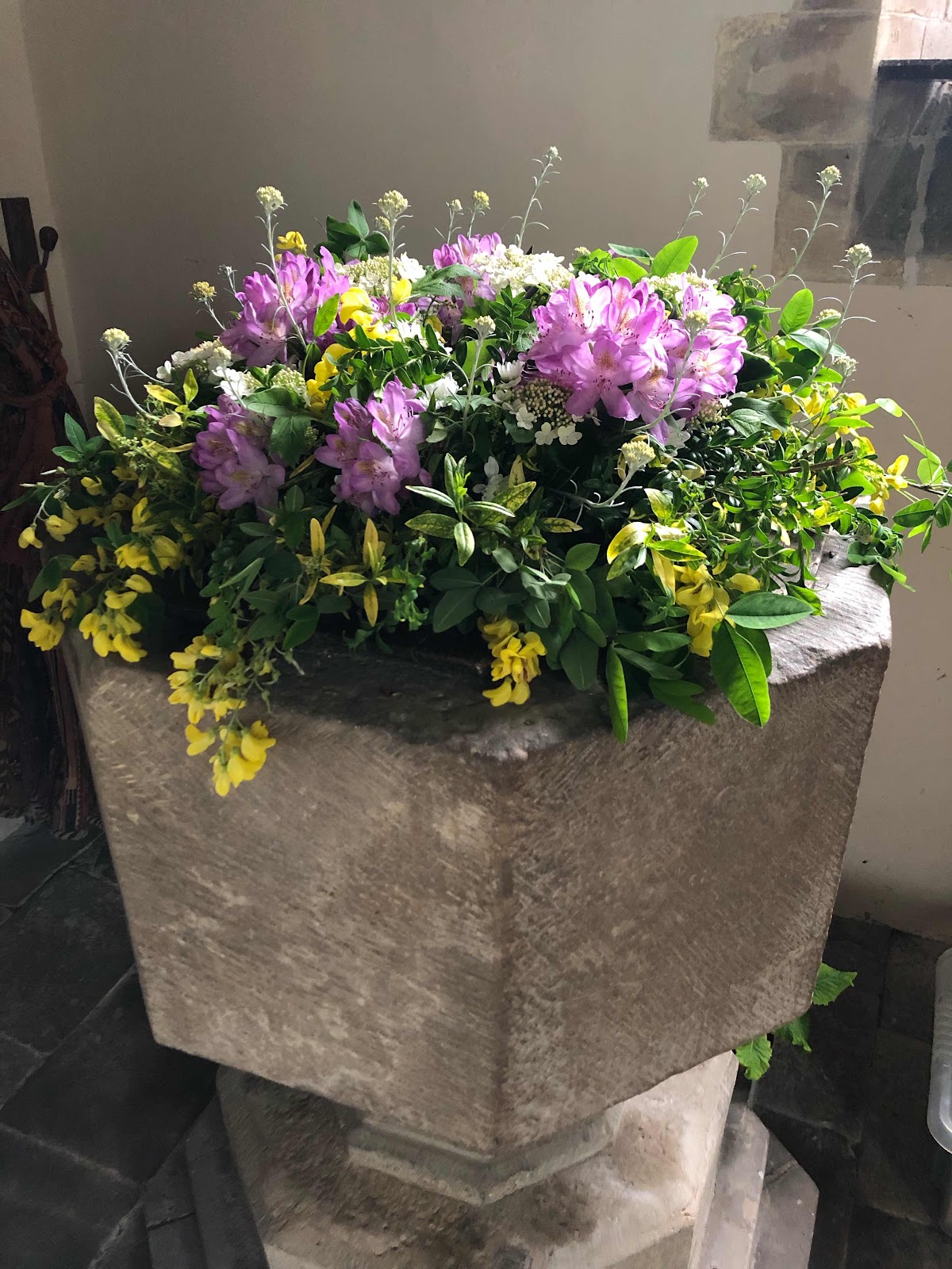 The Church has been exquisitely decorated for tomorrow’s service and for the Hyssington Open Gardens. It looks and smells gorgeous.