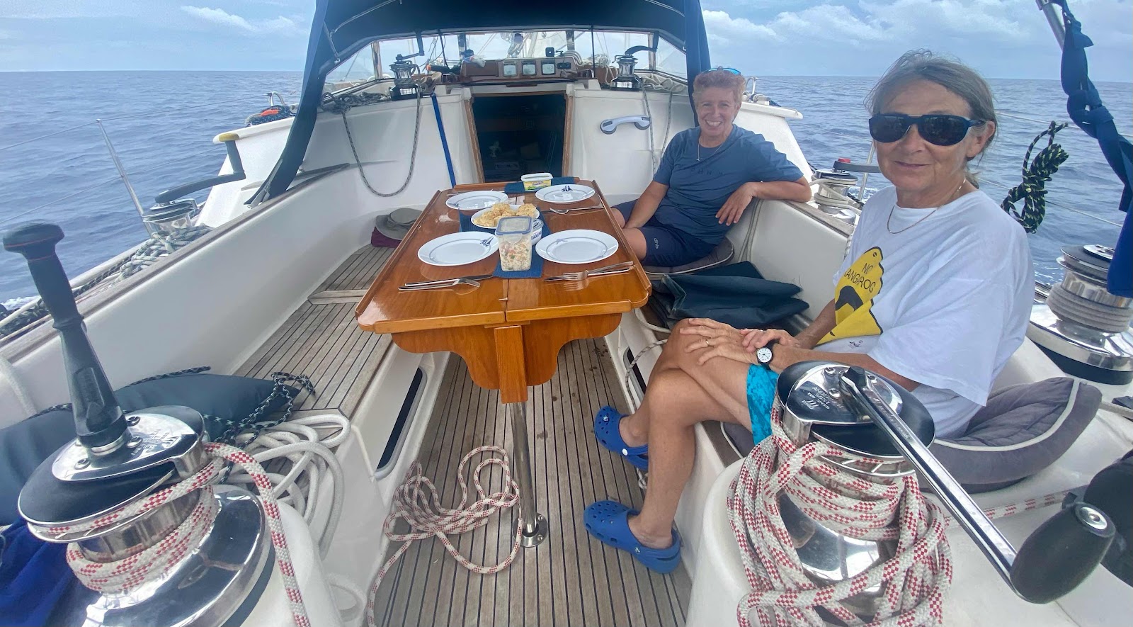 There is always an abundance of great food emerging from the hot and sweaty galley. Shimshal’s large and shaded cockpit is the place we spend most of our day eating, drinking, reading, audio-booking and undertaking various boat projects. Every day brings a new project.