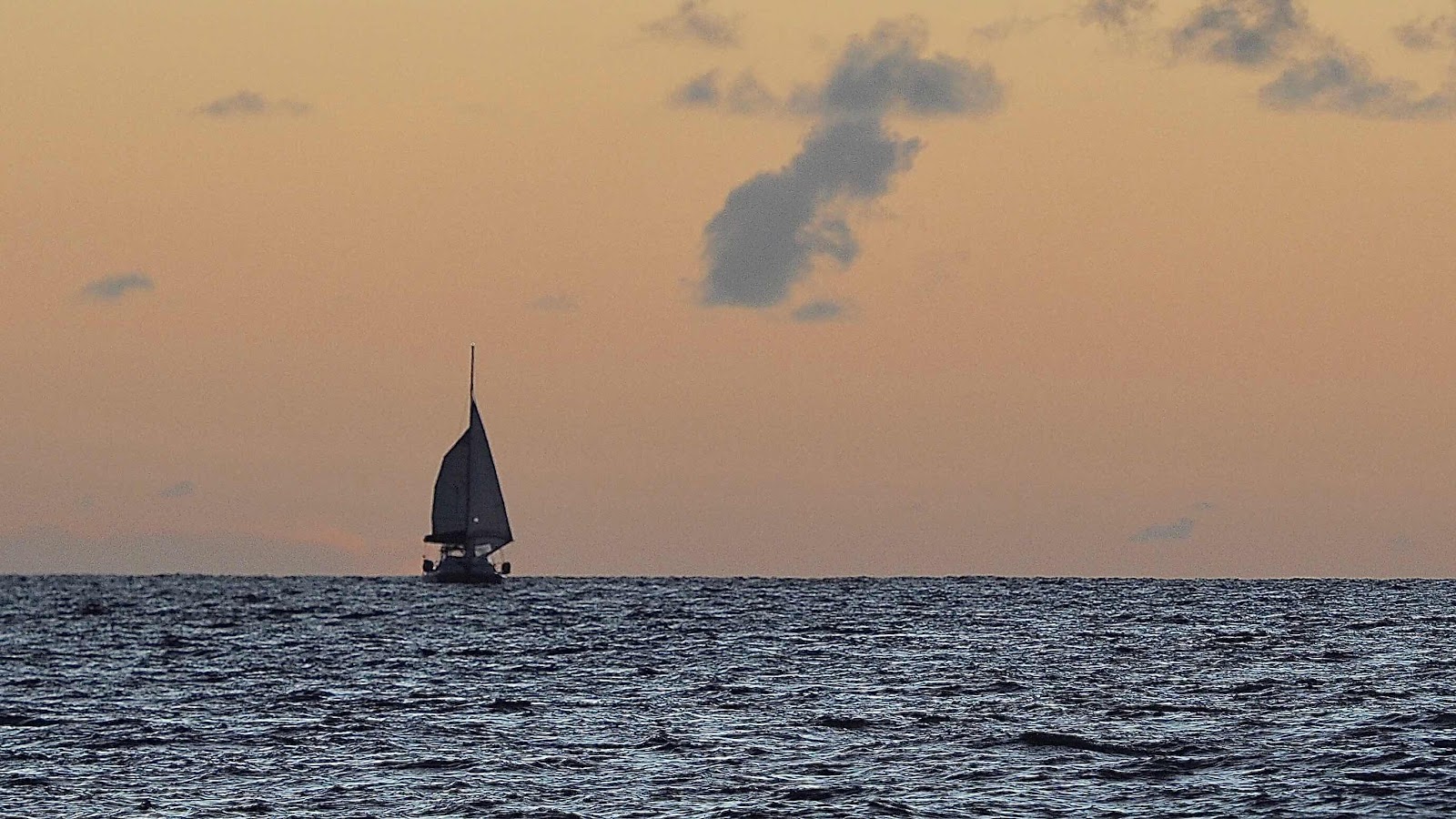 The plan worked like a dream and we ghosted along in flat water under half sail beneath a star stuffed sky until the silvery sliver of moon rose in the east and, with it, the inky blackness receded. We are never more than a mile from Ken and Trish in Shanti 3 who clung to our wake and only veered away when their autohelm spontaneous disengaged many times. Ours does the same but much less frequently!