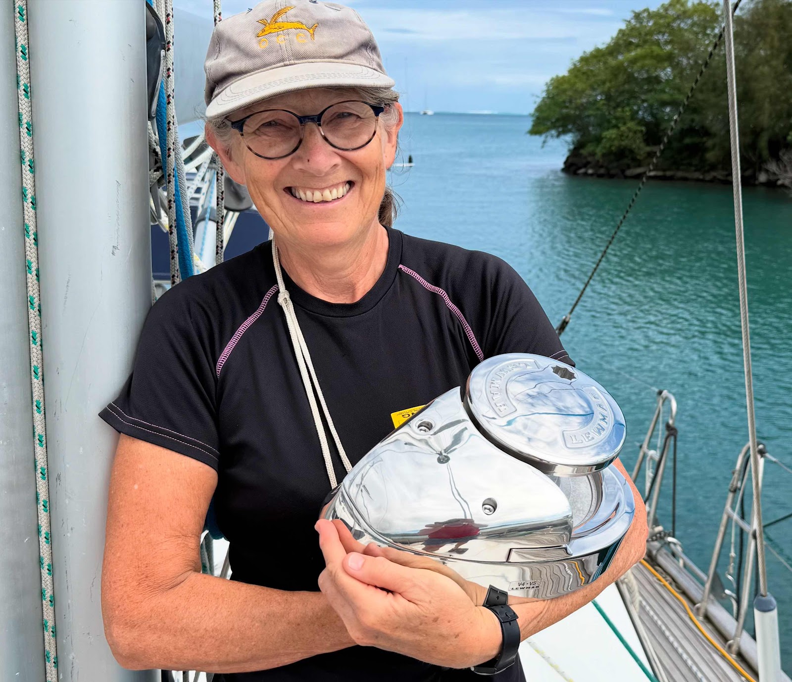Sally looks pleased with yet another silver wedding anniversary present! We now have nearly all the parts needed to make Shimshal seaworthy and we hope to depart for more distant horizons tomorrow - yippee!