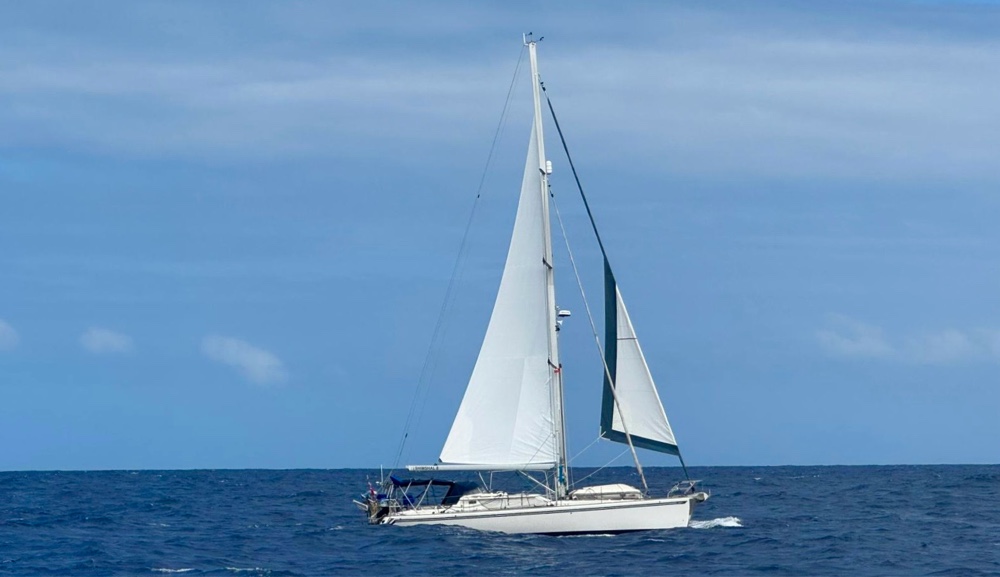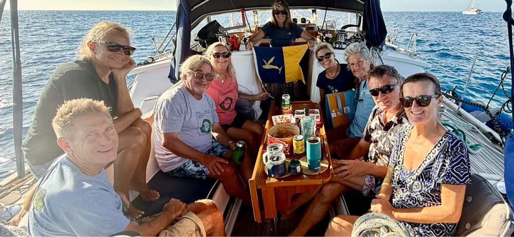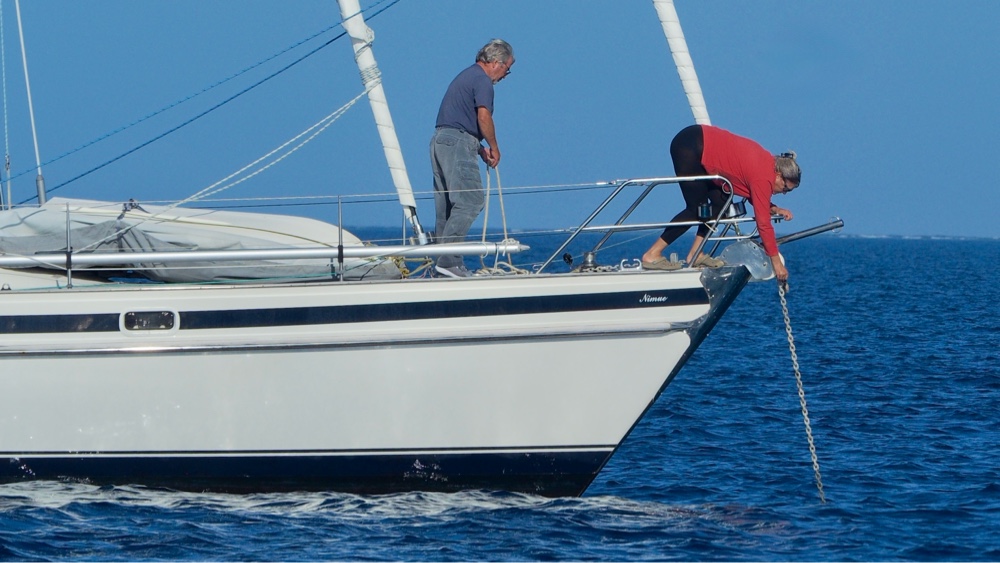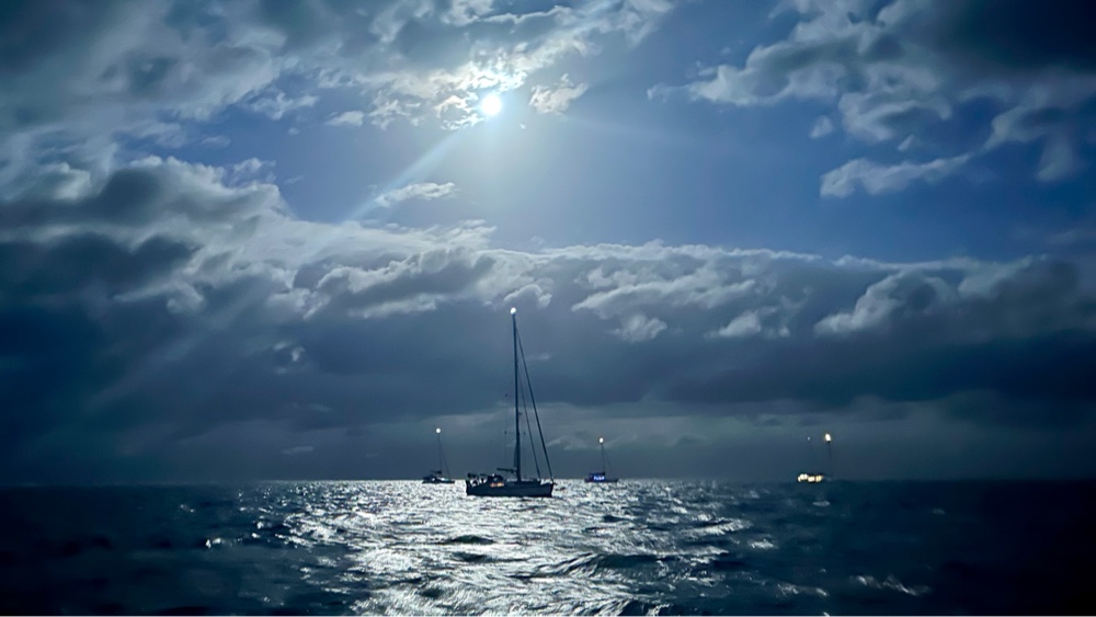 After a magical few days at Minerva reef the weather window opened and everyone lifted their anchors and left. We were the last to get underway but the conditions were too good to miss. A gentle southerly is now whisking us WSW in great comfort and with good speed despite the 3 metre swells. If our forecasts are correct the wind should shift to SE and allow us to sail the rhumb line for Opua in the Bay of Islands, New. Zealand. ETA Sunday night or Monday morning NZ time. Some of the photo credits go to  S/V Nimue (Shimshal by moonlight at Minerva Reef), S/V Trinity (nearly lost his drone taking this), S/V Polaire Bear (Shimshal reefed to slow down when approaching Minerva) and S/V Tourterelles (from our reef walk with expert lobster hunters).