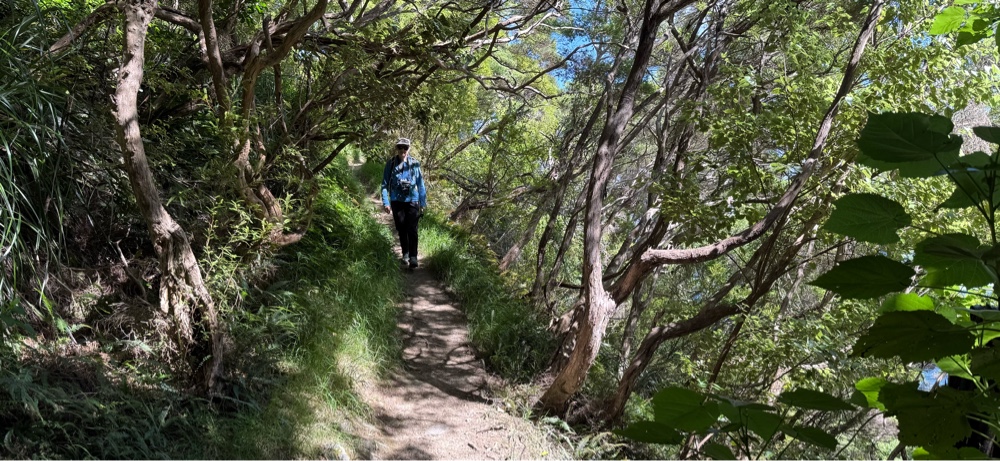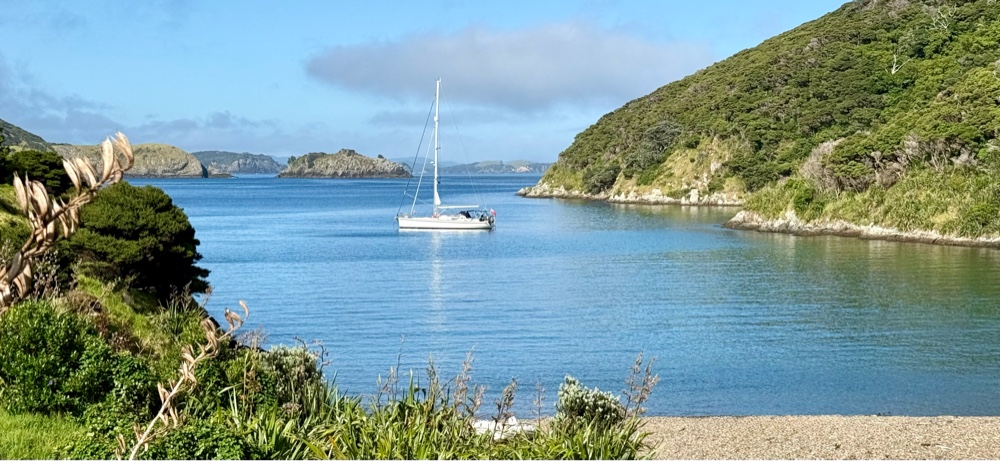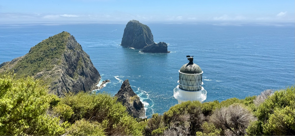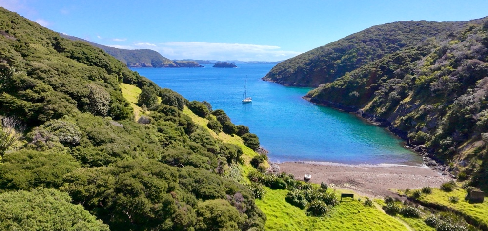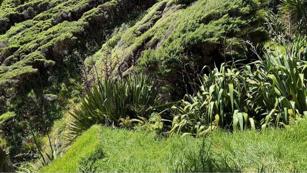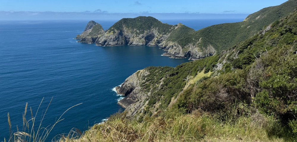 An energetic excursion from boat to Cape Brett and back in the strong spring sunshine.