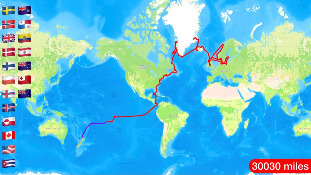 Sally and Simon left Scotland in 2015 on board Shimshal to begin a slow circumnavigation taking in various high latitude destinations. After 3 seasons in Greenland we sailed south to northern Newfoundland. In 2019 we cruised the Canadian Maritimes. In 2022 & 23 we cruised via New England, Chesapeake, Florida, Cuba, Cayman, Providencia to Bocas del Toro. In late 2023 we began a 2 year crossing of the Pacific arriving in New Zealand in October 2025.